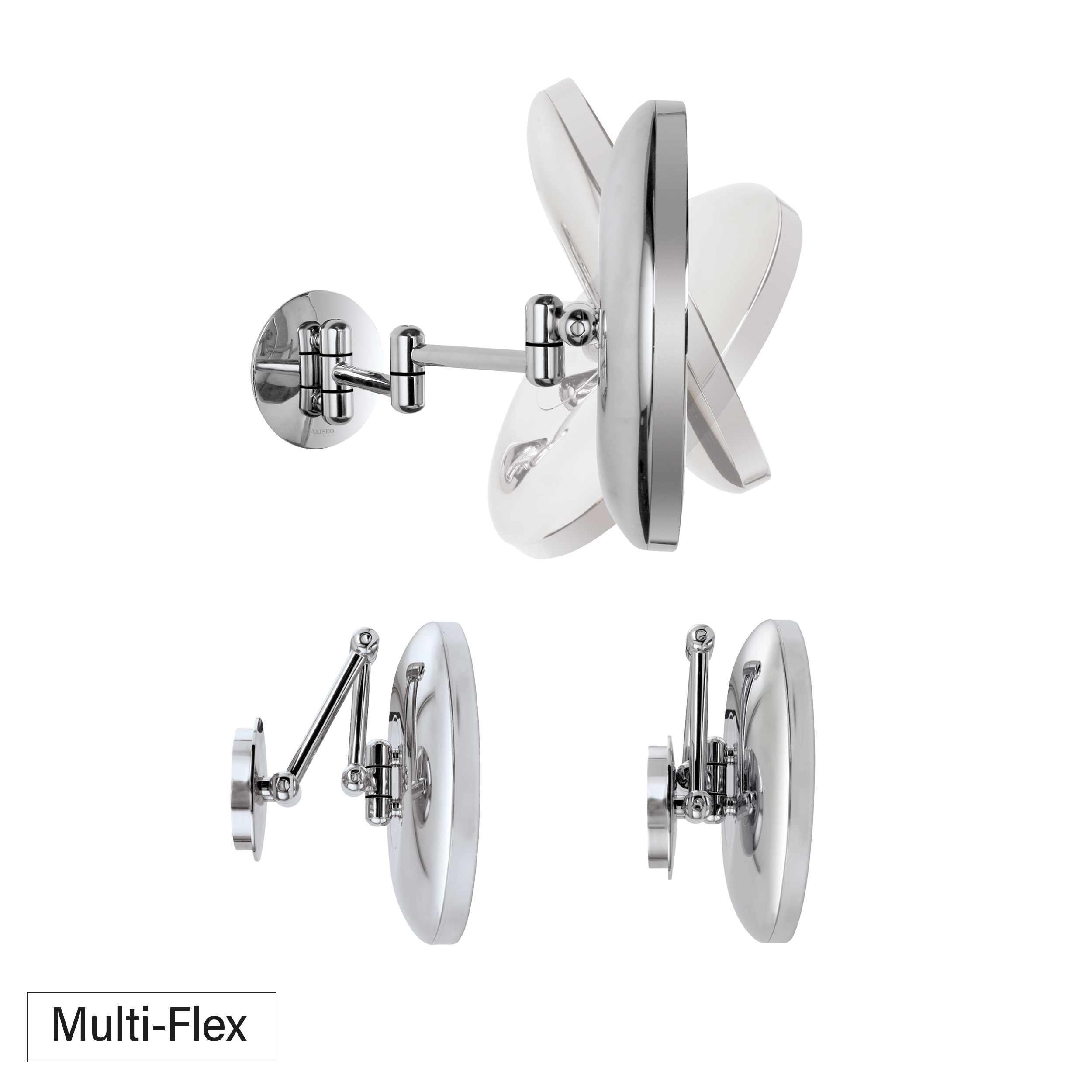 cosmetic mirror with easy-to-move swivel arm design, multifunctional and space-conscious. The Multi-Flex swivel arm enables maximum flexibility.